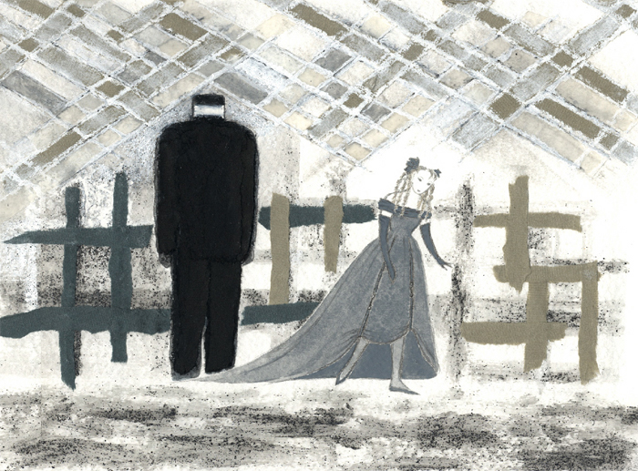 Als Sophie auf den Kirchplatz kam, schien die Sonne, weiß wie ein Diamant. Die Hochzeitsgäste gingen eben in die Kirche hinein, zu Hunderten und Hunderten. Ihre prachtvollen Gewänder leuchteten und funkelten in dem hellen Licht. Aus diesem schillernden Meer ragte ein stumpfer Schatten auf, der Kohlen-Till. Sophie fragte sich, wie er so schnell hierhergekommen war und weshalb man ihn überhaupt eingeladen hatte. Es schien nicht ganz mit rechten Dingen zuzugehen.